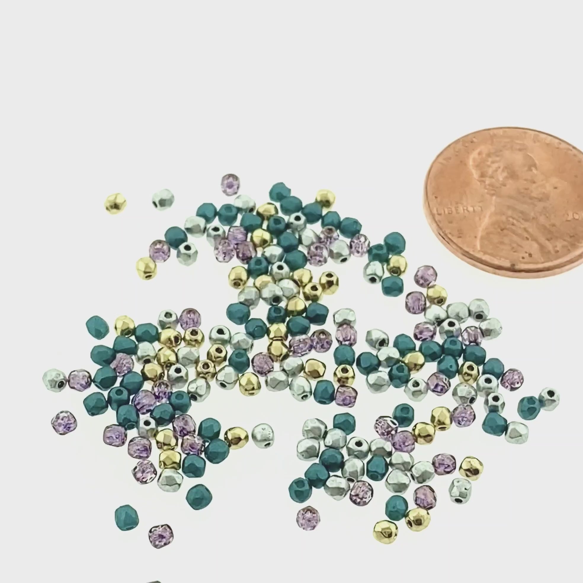 These Bohemian Czech glass beads are pressed round-shaped beads with a fully facetted surface to show off the beautiful glass. This style of bead works great in stringing designs and mixes well with many other styles of Czech glass beads. The smaller sizes are great for use as spacers in beaded designs. 2mm Fire Polish beads also work great in many bead weaving patterns.