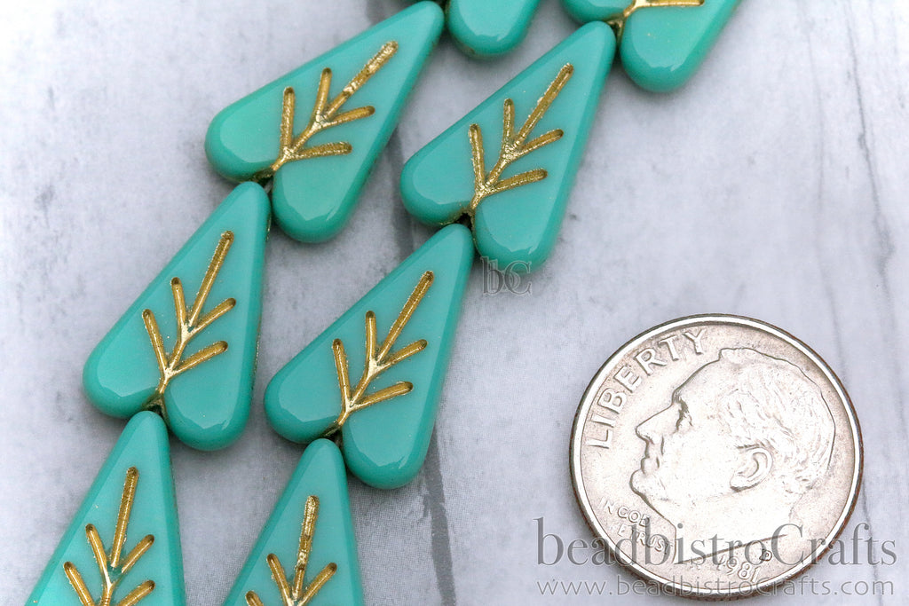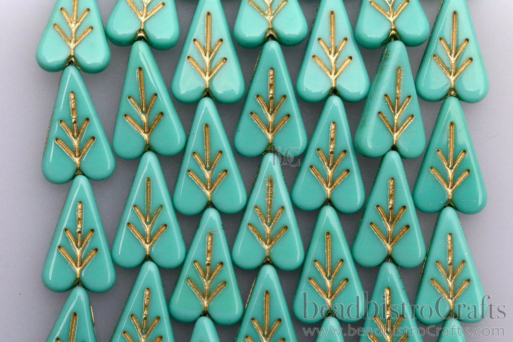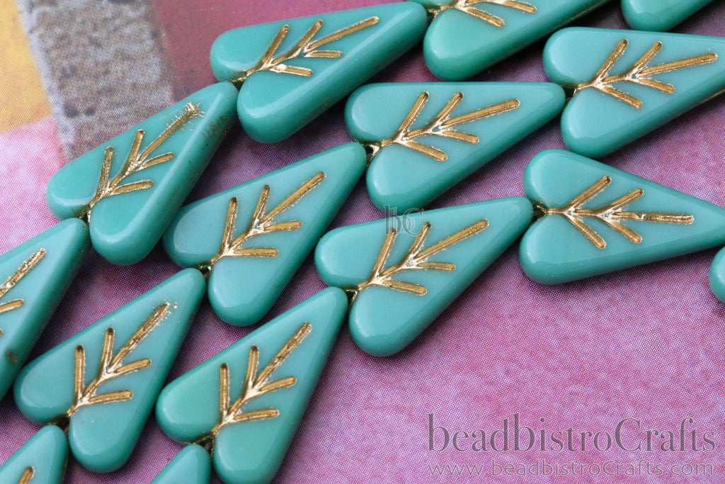 These Bohemian Czech glass Heart Leaf shaped beads are fun and tempting. Add some new life to your designs with this elegant, natural leaf shaped bead. They are a great addition to any Beader's collection and they work up nicely with an array of other pressed Czech glass beads.