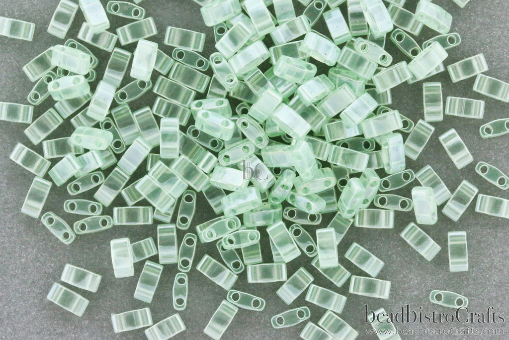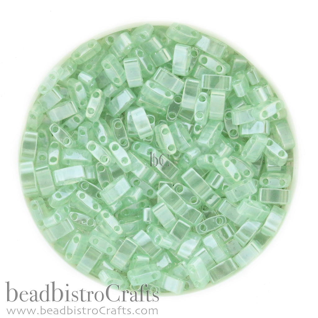 These Premium Japanese seed beads are known for their precision of size. MIYUKI glass beads are considered a "world standard" for their high quality, brilliance, and uniform shape. This style of 2-hole half tila seed bead is similar to the 2-hole Czech glass brick bead but smaller and thinner.